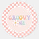 Pegatina Redonda Un Groovy chica Pink Daisy Checker