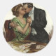 Un beso interrumpe el juego de cartas de una pareja elegante.