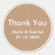 Boda Gracias Pegatina Redondo Clásico. Esta elegante boda Gracias presenta el texto blanco de la tipografía moderna sobre el fondo de Kraft. Una gran elección para los bodas. Parte de una colección de bodas.
