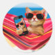 Pegatina Redonda Un lindo gato estaba tirado en la hamaca
