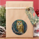 Pegatina Redonda Un majestuoso búho azul y dorado