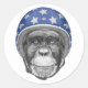 Este diseño presenta un retrato de un chimpancé en un casco patriótico de estilo motorizado.