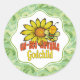 Pegatina Redonda Un niño pequeño increíble, girasoles y abejas
