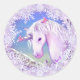 Pegatina Redonda Un paraíso morado y copos de nieve