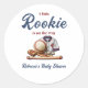 Pegatina Redonda Un pequeño novato en camino - Baby Shower de béisb