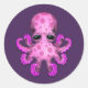 Pegatina Redonda Un pequeño pulpo de bebé rosado en morado
