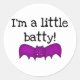 Camisetas de Halloween, tés de manga larga, sudaderas, trajes para el cuerpo, tazas, tarjetas, pegatinas, bolsos de té para trucos o para tratar, y más con un lindo murciélago y texto que dice "¡soy un poco batty!".