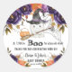 Personalice estas etiquetas de pegatina Baby Shower de Little Boo Halloween fácil y rápidamente, simplemente presione el botón personalizar it para reorganizar y formatear el estilo y la ubicación del texto. Con un bonito fantasma mago y una floral morada oscura y naranja. ¡Todo el texto es editable! ¡Artículos coincidentes disponibles en la tienda! (c) El estudio Happy Cat Studio.