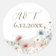 Pegatina Redonda Una elegante acuarela Flora Silvestres Boda Fecha