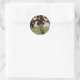 Pegatina Redonda Una Feliz Navidad, patinadores de hielo