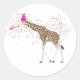 Pegatina Redonda Una jirafa de fiesta de animales de Safari con un