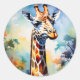Pegatina Redonda Una jirafa salvaje de Safari en acuarela