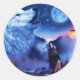 Pegatina Redonda Una manada de lobos en una noche oscura