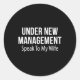 Pegatina Redonda Under New Management - Speak To My Wife -