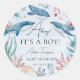 Bajo el mar Whale Blue Boy Pegatina redondo Baby Shower Classic