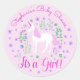 Pegatina Redonda Unicorn Es Un Baby Shower Rosa Chica Personalizado