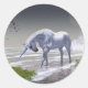 Luna de Unicornio, luna llena levantándose sobre la nieve y las montañas cubiertas de hielo en una fresca y nublada primavera montañosa rodeada por el primer verde de la primavera, el unicornio bebe de inviernos agua derretida por la nieve