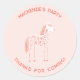 Cálida fiesta de cumpleaños mágica de unicornio color rosa gracias pegatinas, perfecta para bolsas de favores. Personalice cambiando el nombre y el texto para que se adapten a su celebración. Arte original de Nic Squirrell.