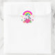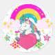 Pegatina Redonda Unicornio arcoiris con estrellas