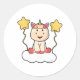 Pegatina Redonda Unicornio con Nube y Estrellas