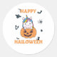 Pegatina Redonda Unicornio En Calabaza Cute Unicornios Feliz Hallow