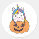 Pegatina Redonda Unicornio En Calabaza Cute Unicornios Feliz Hallow
