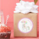 Este hermoso pegatina de unicornio es perfecto para pegarse en todos sus regalos, bolsos de fiesta, bolsos de torta, tarjetas de agradecimiento. Esta escena encantadora es un elegante unicornio con un mané y una cola floridas en rosa pastel y con chispa verde menta con falso purpurina de oro. Flotando suavemente alrededor del unicornio, hay algunos globos acuáticos, cada uno en suaves tonos pastel de rosa rubor, lavanda, azul cielo y verde menta, atado con delgadas cuerdas doradas, añadiendo un toque de brillo al diseño, creando una atmósfera mágica. El nombre es rosa para complementar los colores del unicornio. Cree un tema mágico para su fiesta y añada el nombre y la edad de su hijo haciendo clic en el botón "personalizar".