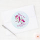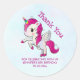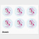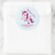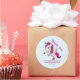 pegatinas fiestas con unicornio alado blanco con melena rosa, cola y pezuñas. El cuerno tiene anillos de color arcoiris y se parece a una golosina de caramelo. Este lindo unicornio está criándose en sus patas traseras. El corazón rosado dulce en la mejilla y las largas pestañas de una niña.