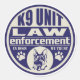 Un logo muy genial de K9 con texto en negrita de la Unidad K9 de aplicación de la ley. Bajo el lema 'En perros confiamos' y las formas de garra de perro al lado de un perro pastor alemán K9. Con los colores blanco y azul oscuro, ¡increíbles regalos de la Unidad de Policía K9 para los entrenadores y simpatizantes!