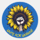 Pegatina Redonda Unidos por Ucrania, girasol y puño