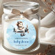 Pegatina Redonda Unique Boy Baby Shower Sticker Blue Brown Teddy