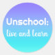 Pegatina Redonda Unschool Live and Learn Verde azulada Purple Pegat