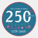 Celebrate America's historic 250th anniversary (Semiquincentennial) in 2026 with these classic round stickers. The design features a bold "250" in white within a vibrant teal blue circle, surrounded by the significant dates "1776–2026" and small decorative elements.