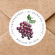 Pegatina Redonda Uvas Tintas de Vino Antiguo Dibujadas a Mano en la