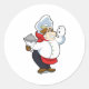 Pegatina Redonda Vaca como camarero con plato de servicio