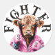 Pegatina Redonda Vaca temática de la lucha contra el cáncer de mama