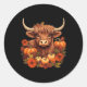 Pegatina Redonda Vaca Y Sale De Las Calabazas Del Otoño Occidental