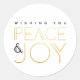Estos pegatinas de vacaciones presentan el saludo Paz y Alegría. Los colores son de imitación de oro y negro y las coordenadas con la colección de árboles de vacaciones Art Deco.