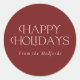 Estos elegantes stickers de Navidad presentan una tipografía simple y elegante que dice "Felices Fiestas" en marfil. Se incluye una plantilla de texto para facilitar la personalización. El color de fondo (rojo burdeos) se puede personalizar a cualquier color que desee. ¡Genial para sellos para sobres, pegatinas de etiquetas de regalo, pegatinas a favor del partido y más!