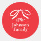 Navidades Bow Sencillos Pegatina de Ronda Clásico de Vacaciones. Haga clic en el botón personalizar para personalizar este diseño con el texto.