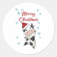 Pegatina Redonda Vacas de ternera de invierno con nieve de navidad