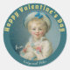 Pegatina redonda de San Valentín inspirado en un hermoso retrato infantil de estilo pastel del pintor francés rococó Jean-Honoré Fragonard (Un niño como Pierrot, c.1785). Muestra a un niño de cabello liso vestido con un disfraz blanco de Pierrot de tamaño excesivo. El chico tiene una expresión expectante feliz y lleva un montón de flores rojas y azules en sus brazos. Personalice el pegatina simplemente escribiendo sobre los textos de ejemplo. Para obtener más personalización, haga clic en el botón Personalizar y utilice el editor de diseño.