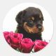 Pegatina Redonda Valentine Rosa Rottweiler Puppy