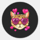 Pegatina Redonda Valentines Ca Kitten Wearing Sungl Heart Cat Lover