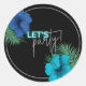 Celebra tu cumpleaños con estilo con este diseño atrevido, neón, tropical con acentos purpurinas plateados, hibiscos azules y verde azulados, y vegetación tropical sobre un fondo negro. Utilice el pegatina con la invitación coincidente. Vamos, fiesta.