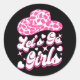 Pegatina Redonda Vamos niña Gorra de campo, dama de honor rosada