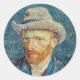 Pegatina Redonda Van Gogh - Retrato propio con un Gorra de Grey Fel