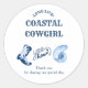 ¡Prepárate para celebrar a la futura novia con nuestro pegatina redondo clásico de la fiesta de la bachillerato Coastal Cowgirl! El encanto del océano se funde con el espíritu del oeste salvaje con motivos costeros y occidentales. Perfecto para una temática tropical del océano de playa o un bash del Chica occidental del último rodeo. Ya sea Chica costero o amante de los Blue Coastal Vibes, gracias pegatina. Con botes Blue Western Yehaw y motivos de conchas marinas, es ideal para cualquier Fiesta Divertido Blue Aesthetic. Desde Nueva Orleans hasta Nashville, Miami hasta Charleston, e incluso Texas y Tennessee, este clásico pegatina redondo captura la esencia de la diversión y la aventura. ¡Hacerla inolvidable con esta pegatina única y vibrante!