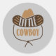 Pegatina Redonda Vaquero lindo, Gorra vaquero