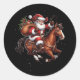 Pegatina Redonda Vaquero Santa montando a un caballo Navidades Funn